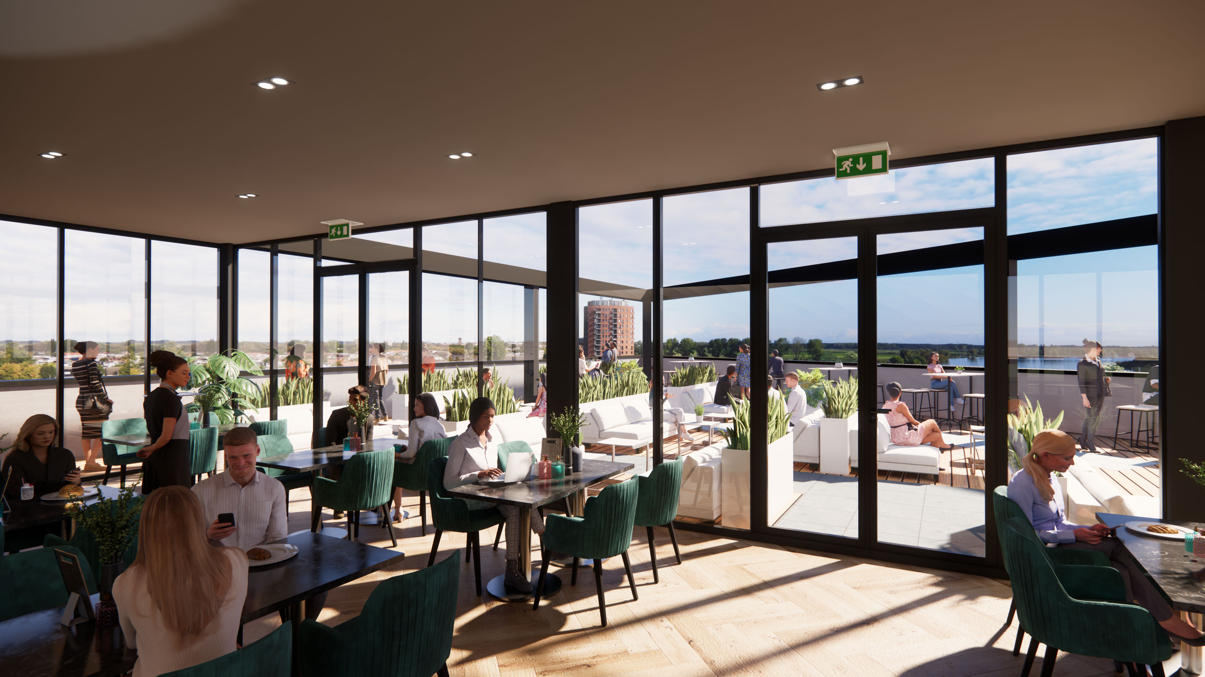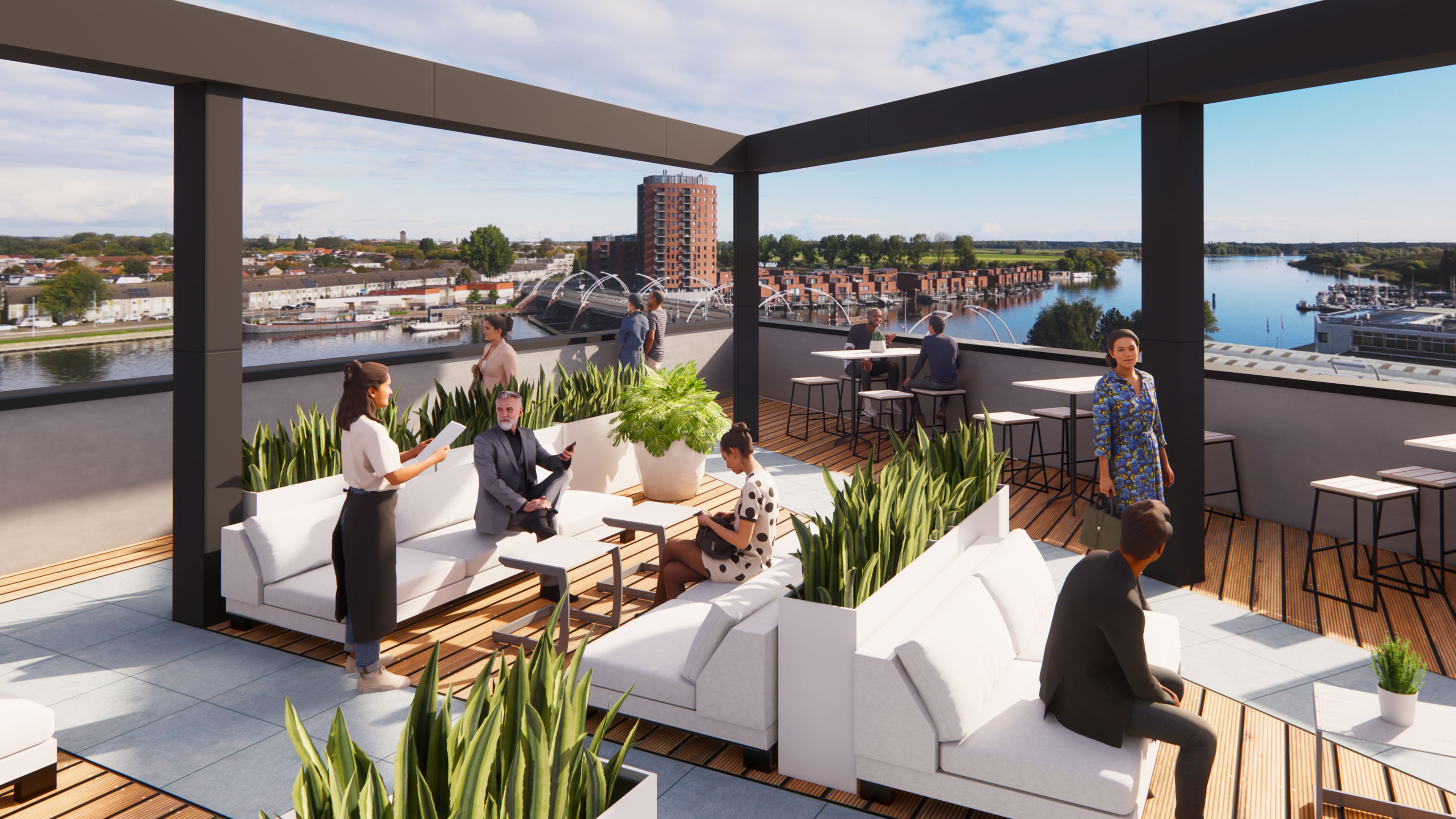De kantoorunits zijn gelegen op de bovenste verdieping met een fraai uitzicht over het Spaarne en over Haarlem. Tevens is op deze etage ook de horeca gevestigd, waardoor een goede lunch binnen handbereik is. De kantoorunits hebben een eigen voordeur (entree), welke uitkomt op de galerij.