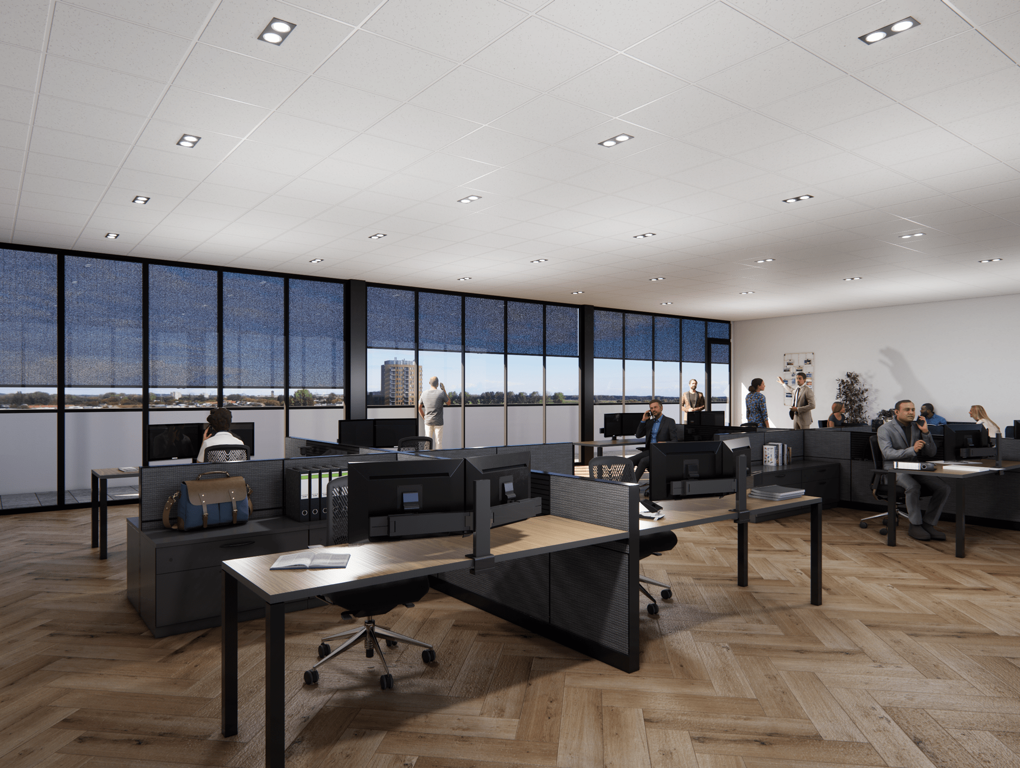 De kantoorunits zijn in verschillende metrages samen te stellen.